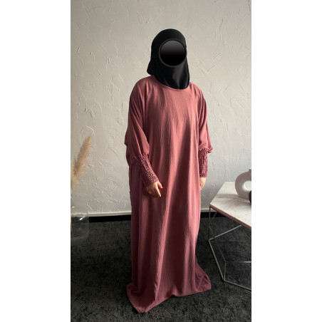 Abaya manches fripées couleur rose
